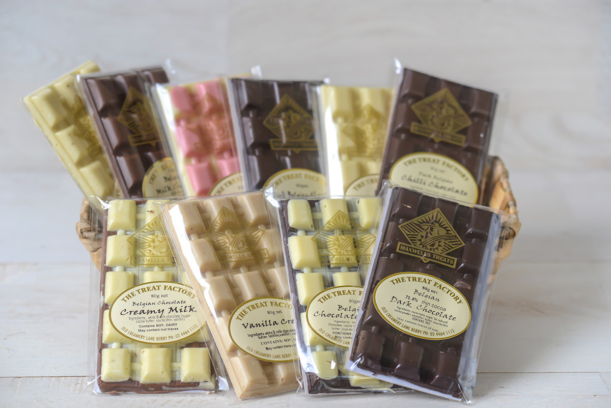 Dark Belgian Chocolate Bar (53% cocoa). Treat Factory's most popular chocolate bar has a rich, dark and slight bitter taste. Ingredients: cocoa mass, sugar, cocoa butter, soya lecithin. 53.8% min cocoa. CONTAINS SOY.